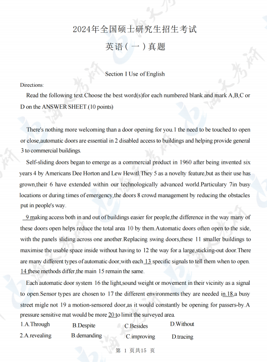 2024全国硕士研究生招生考试英语一真题